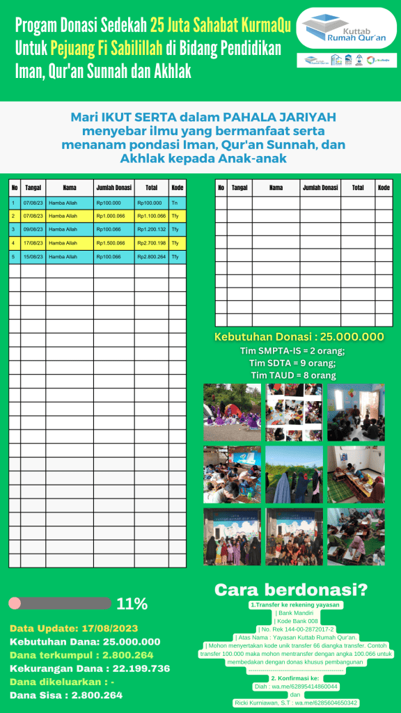 ? Berapa kebutuhan total infaq bagi para pejuang pendidikan ini?